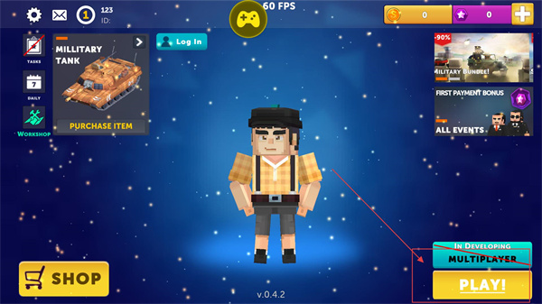 1、玩家進入游戲后,在游戲的主界面右側PLAY按鈕啟動游戲,點擊PLAY進入單人模式,是開啟游戲的核心操作。