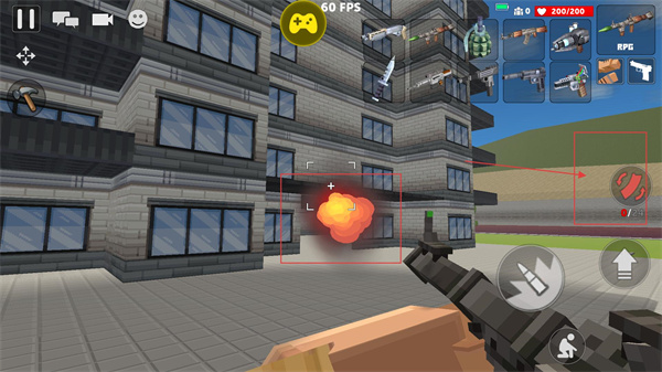 3、當玩家在使用火箭發射器攻擊建筑會觸發爆炸效果,右側彈藥圖標顯示剩余數量,需留意彈藥消耗,及時補充或切換武器。