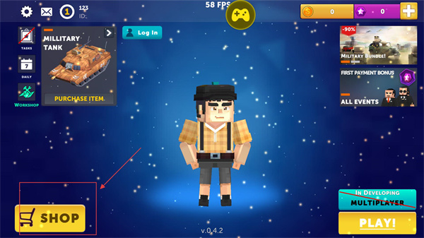 1、主界面SHOP按鈕可進入商店,玩家需要點擊按鈕進入商店內購買人物,進入后即可購買更換人物。