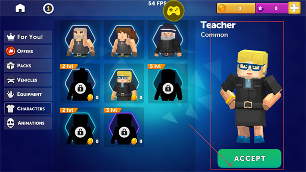 4、玩家還可選擇Teacher角色,玩家在購買后點擊ACCEPT生效,角色系統以外觀個性化為主,可按需切換提升視覺體驗。