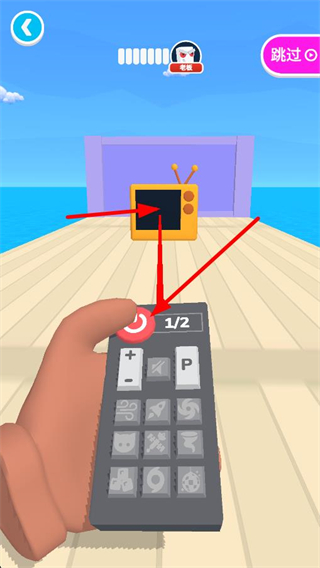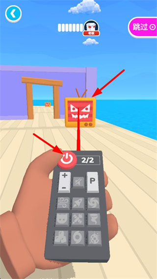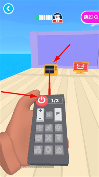1、可以看到手握著遙控器和前方的電視,點擊遙控器上的電源鍵,即可關閉邪惡的電視,這是通關的第一步操作。
