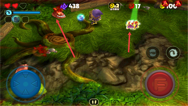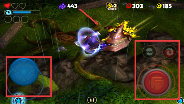 2、戰斗時左側藍色方向鍵用于操控角色移動,右側紅色按鍵釋放攻擊技能,遇到敵人時點擊攻擊鍵輸出傷害,同時留意角色血量狀態。