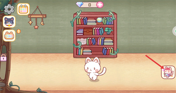 1、進入游戲界面后,點擊場景中的小貓圖標,進入對應的裝扮界面,可開始對小貓進行裝扮相關的操作。