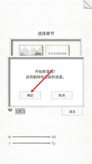 1、在選擇章節界面,若要開啟新進程,可點擊確定按鈕,需注意這會刪除當前的游戲進度,按需操作。