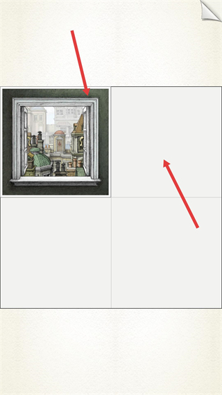 3、關注窗景區域的指引箭頭,把窗戶邊框分出放入下一幅圖,解鎖對應的場景片段,推進劇情探索。