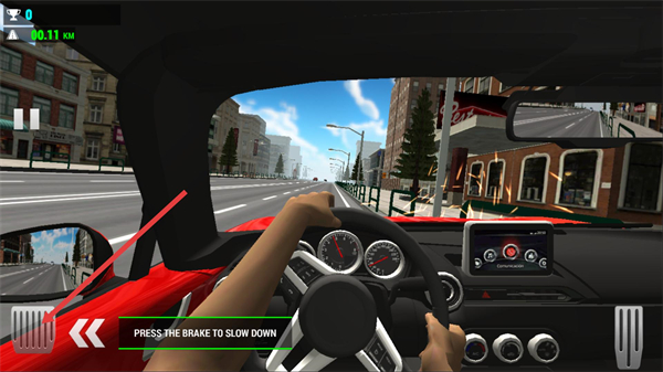 2、駕駛時留意界面提示PRESSTHEBRAKETOSLOWDOWN,按對應按鍵控制車速,避免在城市道路中失控,保障行駛安全。