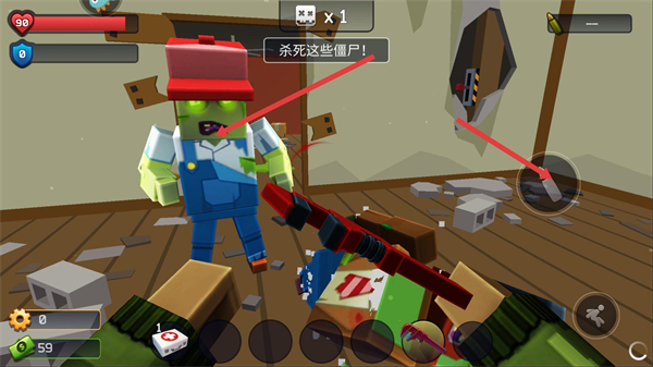 4、接收到殺死這些僵尸的指令后,使用武器攻擊出現的僵尸單位,擊敗目標可推進關卡,同時注意角色血量變化。