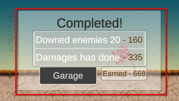 4、通關后會顯示結算信息,包括擊敗敵人數量傷害數值和獲得的獎勵,點擊Garage按鈕返回車庫,為下一輪戰車對戰做準備。