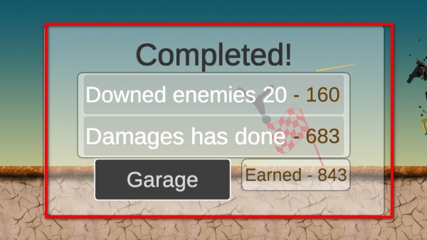 4、戰斗結束后彈出結算界面,顯示擊敗敵人的數量、戰斗造成的傷害數值及所得獎勵,點擊車庫按鈕返回車庫,為下一輪的戰車對戰做準備。
