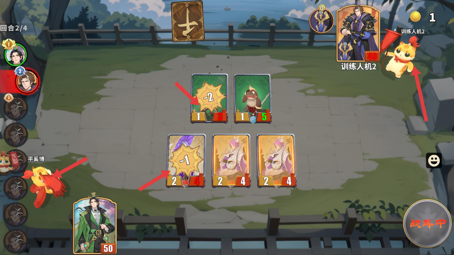 3、戰斗時,留意卡牌的數值變化情況,合理運用卡牌的效果,和對手展開對戰,努力爭取戰斗的勝利。