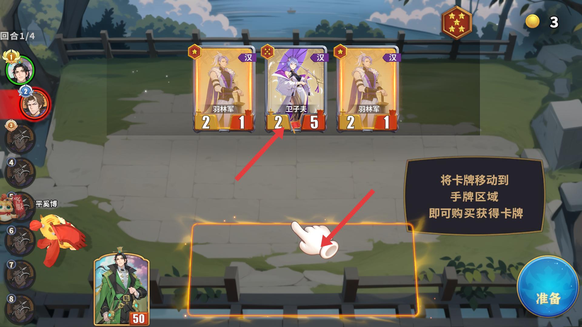 2、要獲取卡牌,把卡牌移動到手牌區域,就能成功購買得到該卡牌,以此豐富自己的手牌,為后續對戰做好準備。
