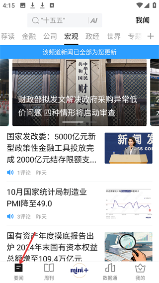 1、要聞宏觀欄目,發布財政部采購、國家發改委金融工具、制造業PMI等財經資訊,傳遞經濟動態。