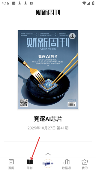 2、周刊板塊展示財新周刊競逐AI芯片主題封面,提供財經周刊閱讀,聚焦行業深度分析。