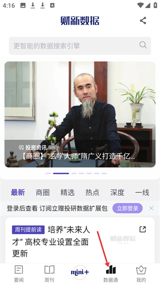 4、數據通板塊有智能數據搜索引擎,發布高校專業設置、商圈玄學大師等數據資訊,提供財經數據服務。