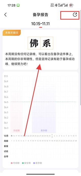 3、進入備孕報告頁面后,仔細查看報告里關于備孕情況的分析,了解本周期的備孕狀態等信息。