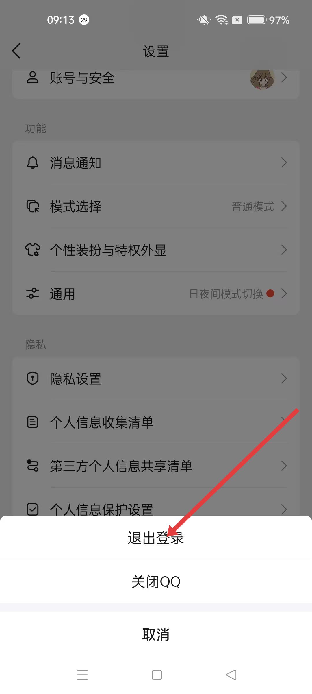 QQ怎么退出登錄賬號