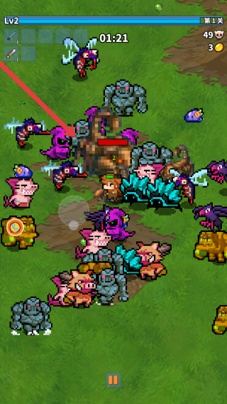 1、經典2D像素畫風:以經典的2D像素風格呈現,地下城中暢快地擊殺怪物,體驗割草的快感。畫面簡潔但細節豐富,增強了游戲的復古氛圍與辨識度。