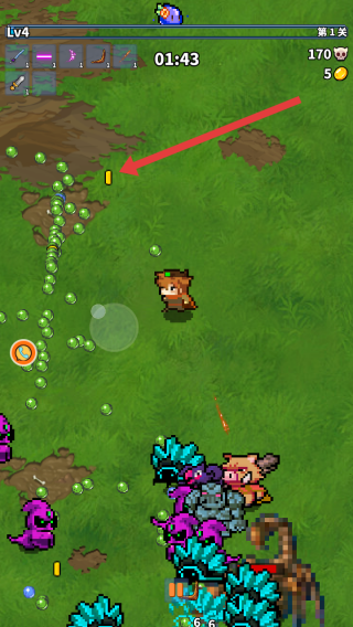 4、戰斗時會有綠色的攻擊特效等元素,角色不斷移動攻擊,同時場景中還會出現金幣等,助力戰斗,提升游戲體驗。