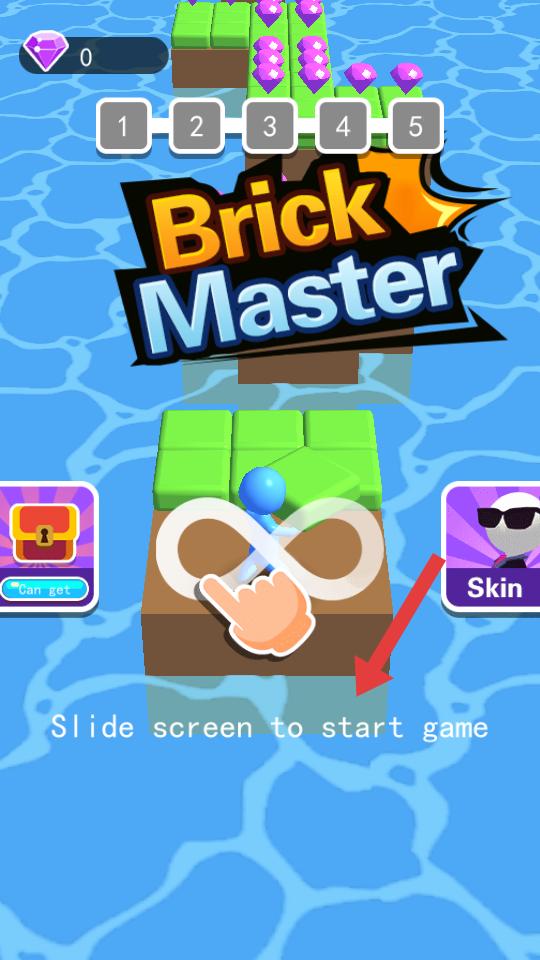 1、進入游戲,看到Brick Master標題界面,按照提示滑動屏幕,即可開始游戲。