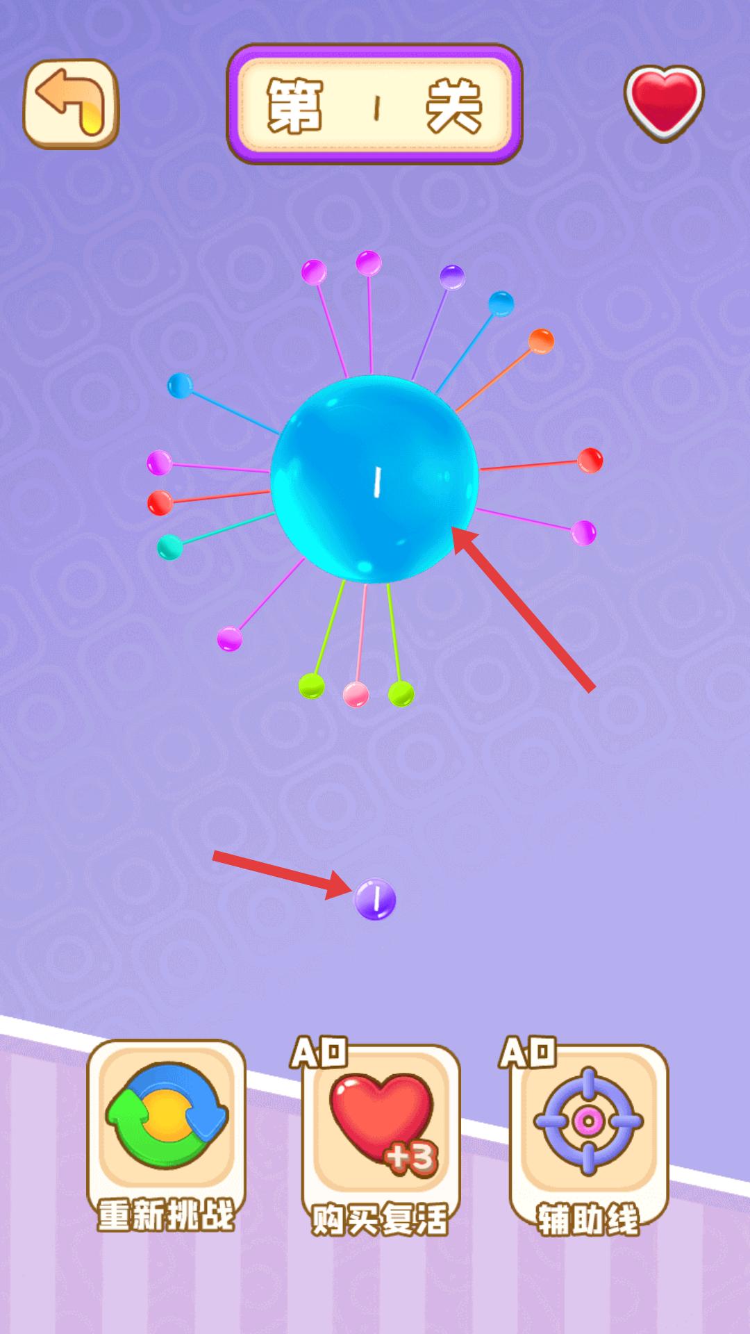 3、隨著操作,玩家需點擊屏幕讓小球落在主球上,注意不要碰到旁邊的球,向通關靠近。