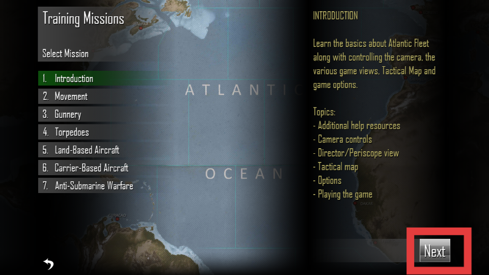 2、玩家通過完成這些訓練,了解游戲視角控制、戰術地圖使用、艦艇移動與攻擊等操作點擊Next可以進入下一個訓練任務。