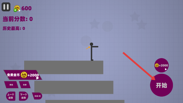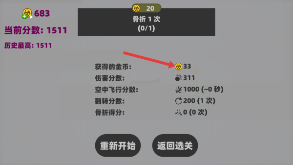 3、游戲界面實時顯示分數統計,隨著火柴人收集金幣、完成操作,分數會不斷累積,直觀呈現游戲進度。