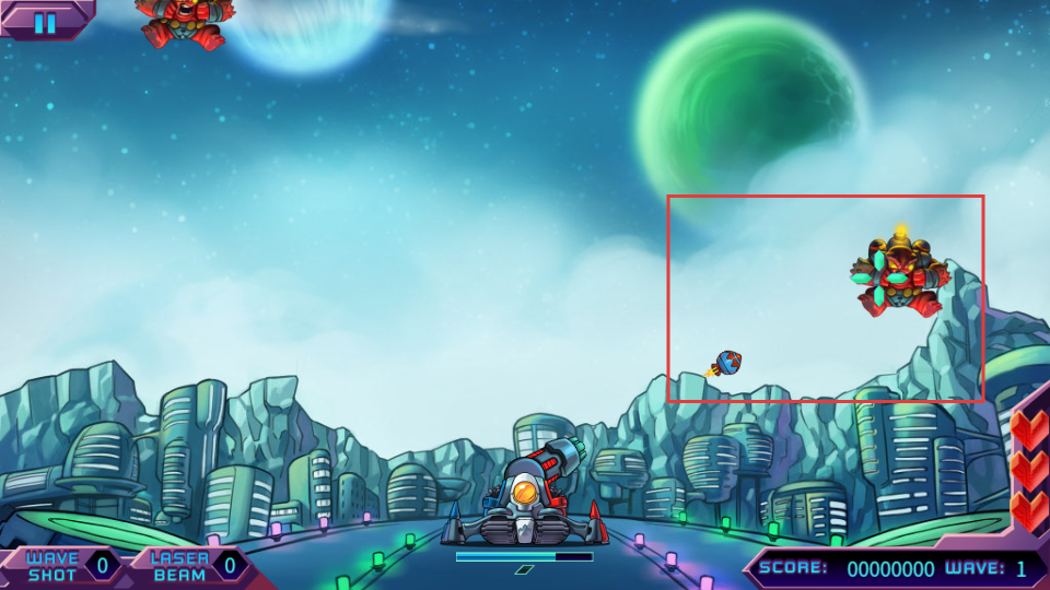 2、在戰斗場景中操控武器,瞄準來襲的外星敵人,發射炮彈攻擊它們,阻止敵人靠近,守護區域安全。