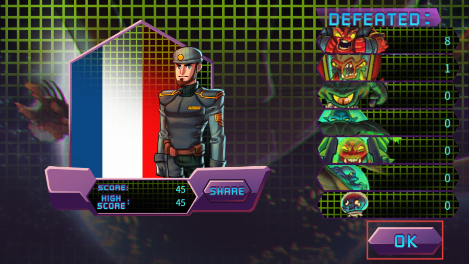 3、戰斗結束后,會顯示得分和擊敗敵人的情況,點擊OK按鈕,可確認結果,之后能繼續參與新的戰斗。