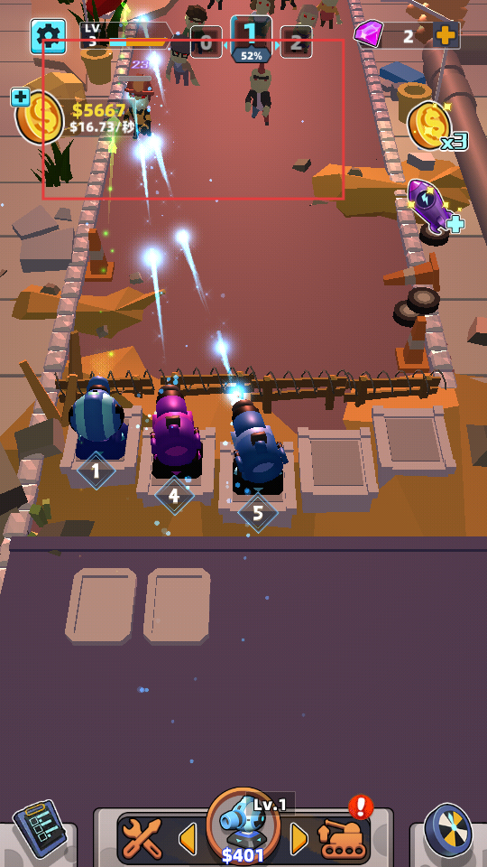 1、立體戰場呈現:采用45度俯視視角展現全3D戰場環境,僵尸從四個方向涌來時能清晰觀察戰局變動,方便及時調整防御陣型。