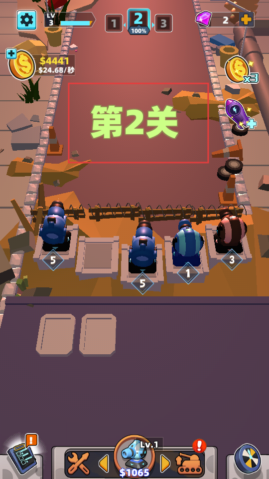 1、基礎防御布局:在六邊形網格陣地部署炮塔,注意交錯擺放近程速射單位與遠程狙擊坦克,形成互補火力網應對不同敵人特性。