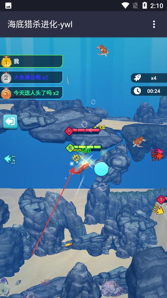 3、隨著小魚不斷成長,可挑戰更強大的魚類,與它們展開戰斗,利用靈活的移動和攻擊,消滅對手提升自己的等級和實力。