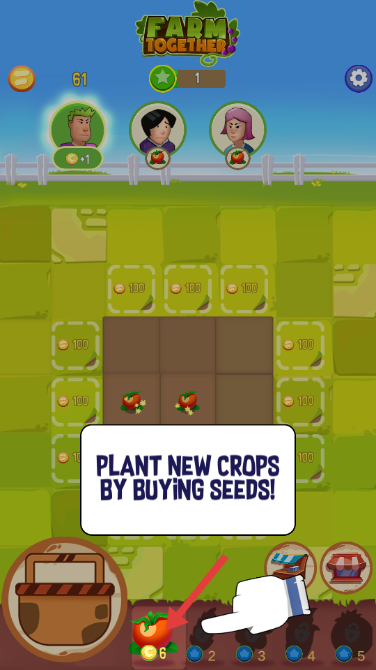 4、農場發展需要種植新作物,點擊下方帶金幣標識的種子圖標,購買種子然后種植到空地上,拓展農場作物種類。