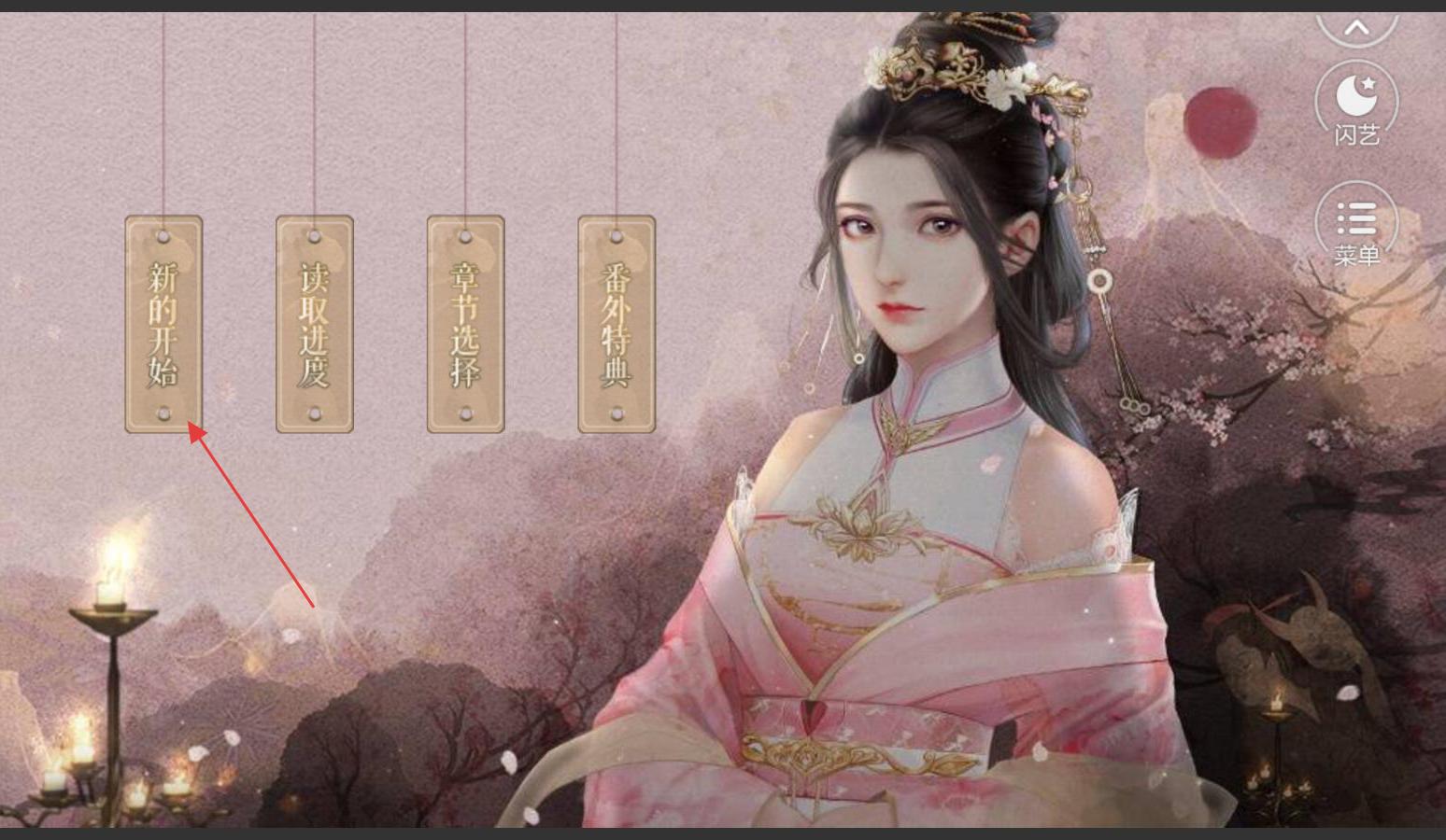 2、接著進入功能選擇界面,能看到新的開始、讀取進度、章節選擇、番外特典幾個選項,選擇新的開始,就能開啟新的劇情。