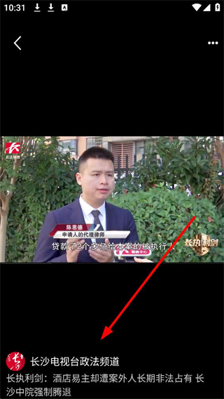 2、視頻播放界面,可觀看長沙電視臺政法頻道的新聞視頻,了解新聞詳情,視頻下方顯示新聞來源和標題。