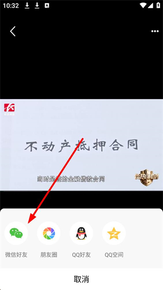 3、若想分享視頻,可點擊分享按鈕,選擇微信好友、朋友圈、QQ好友、QQ空間等分享渠道,將視頻分享給他人。