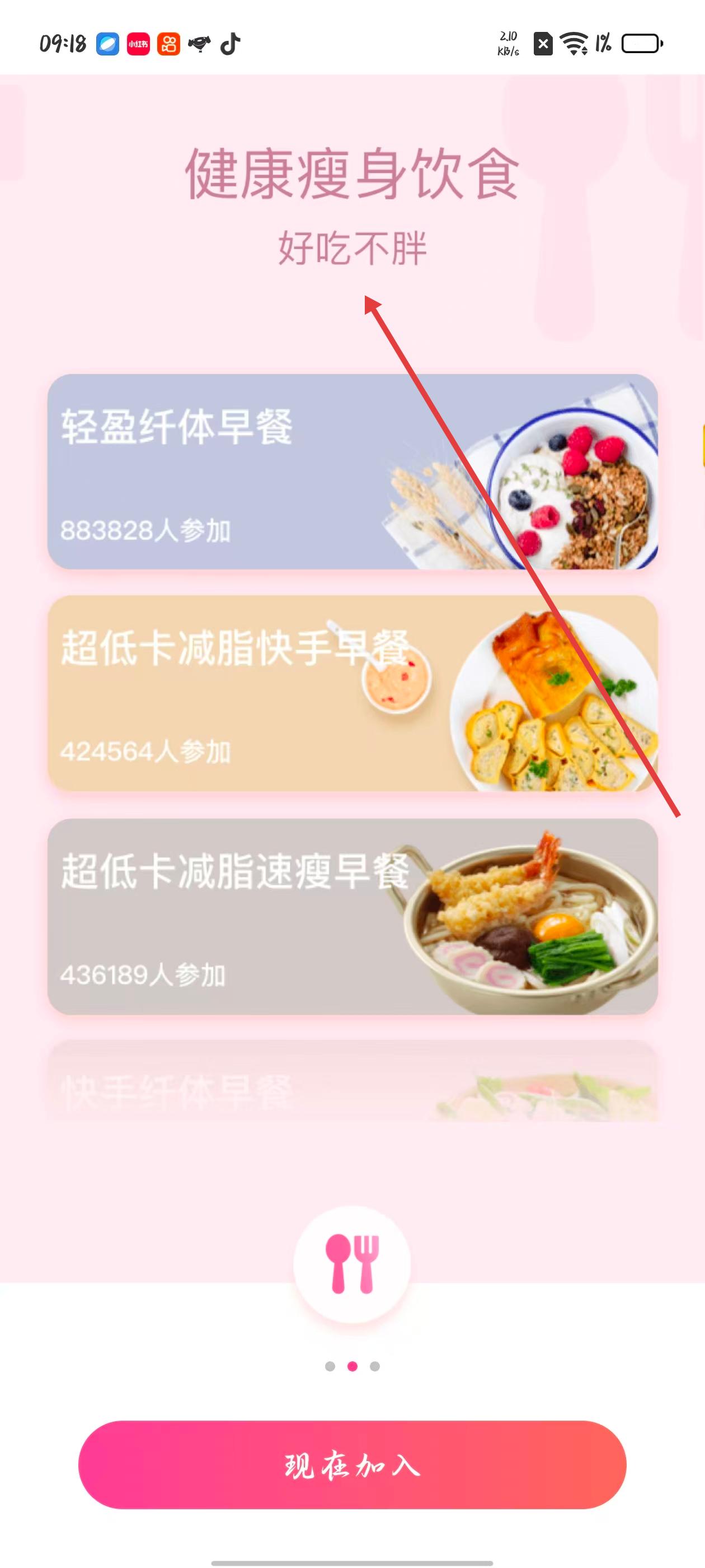 4、進入健康瘦身飲食頁面,查看輕盈纖體早餐、超低卡減脂快手早餐等健康飲食方案,選擇適合的飲食計劃后點擊現在加入。