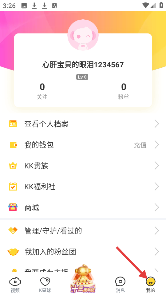 4、我的頁面展示用戶昵稱、等級等信息,設有查看個人檔案、我的錢包等功能入口,支持充值方便用戶管理個人信息。
