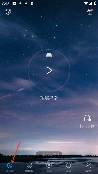 1、哄我睡頁提供璀璨星空等多樣助眠背景,支持打卡入睡功能,全方位助力用戶快速且舒適地進入睡眠狀態。