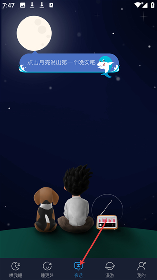 3、夜話頁有點擊月亮說晚安的趣味互動設計,營造出溫馨的睡眠氛圍,助力用戶輕松養成良好睡眠習慣。