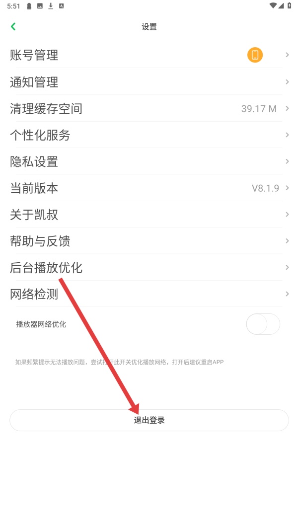 3、接著來到設置頁面中,然后找到底部的退出登錄按鈕并點擊。