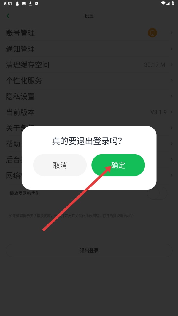 4、此時會彈出真的要退出登錄嗎的提示框,點擊確定按鈕,即可完成退出登錄操作。