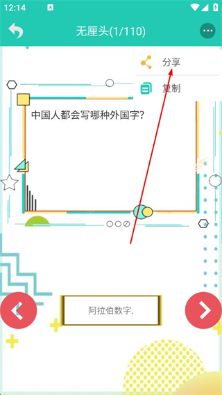 4、在展開的操作選項中選擇分享按鈕,通過對應的分享渠道,將這道無厘頭腦筋急轉彎題目及答案發送給想要分享的對象。