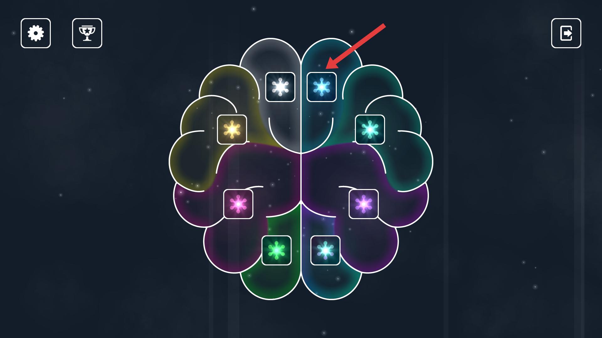 1、界面展示大腦形狀的圖案,有不同顏色帶雪花圖案的方塊,需觀察方塊分布,嘗試點擊或拖動方塊,探索讓相同或對應方塊產生關聯的方式。