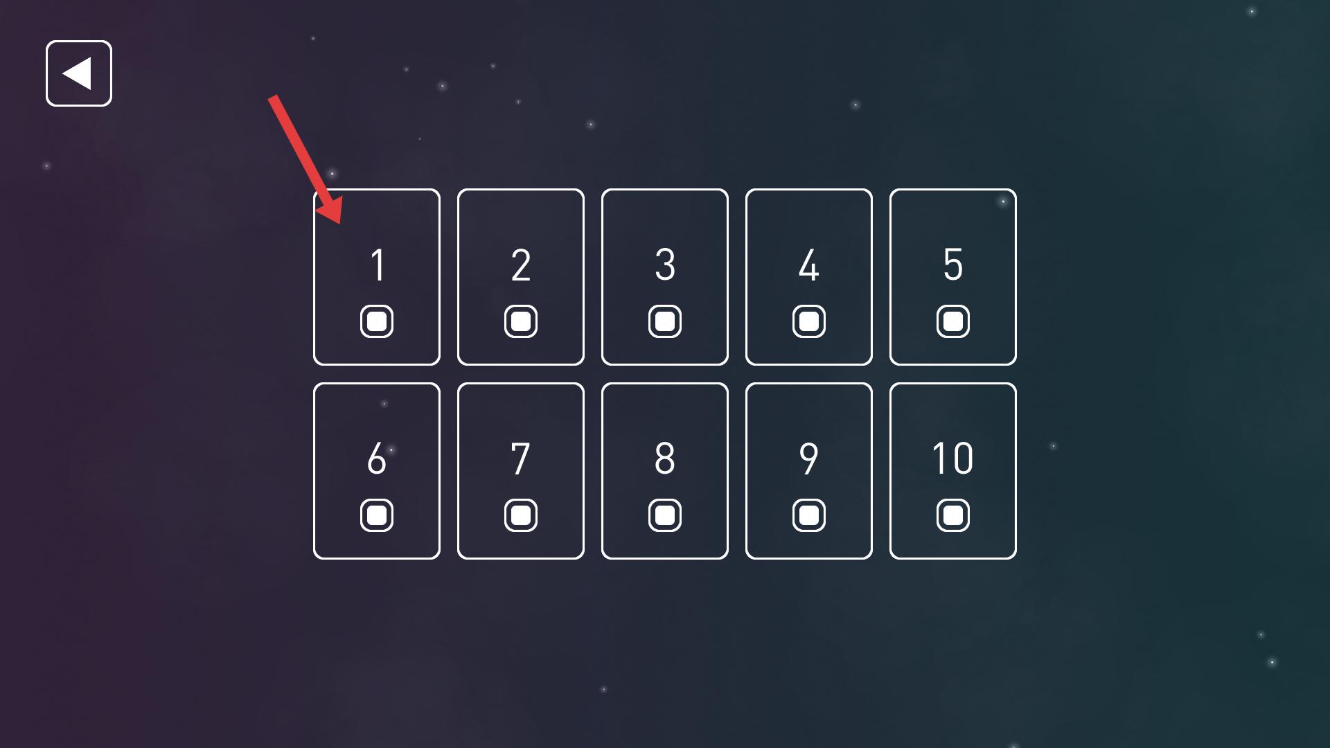 2、關卡選擇界面有標著1到10的關卡按鈕,新手可從關卡1開始,點擊關卡1按鈕,進入第一關,開啟游戲挑戰,逐步熟悉游戲規則。