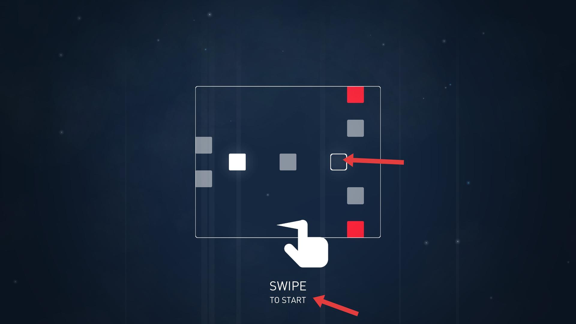 3、進入關卡后,界面有白色方塊和滑動開始提示,按照提示滑動屏幕,讓白色方塊移動,開始游戲,通過滑動操作操控方塊,完成關卡目標。