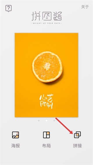 1、首先在拼圖醬軟件主界面,界面底部有海報、布局、拼接選項,點擊拼接進入自由拼圖的功能界面。