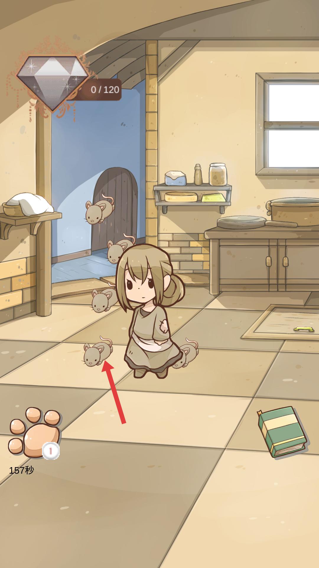 4、場景中有老鼠,要點擊老鼠,進行互動或處理,同時注意上方鉆石收集進度,在新的場景中繼續收集鉆石,完成120個鉆石的收集目標。