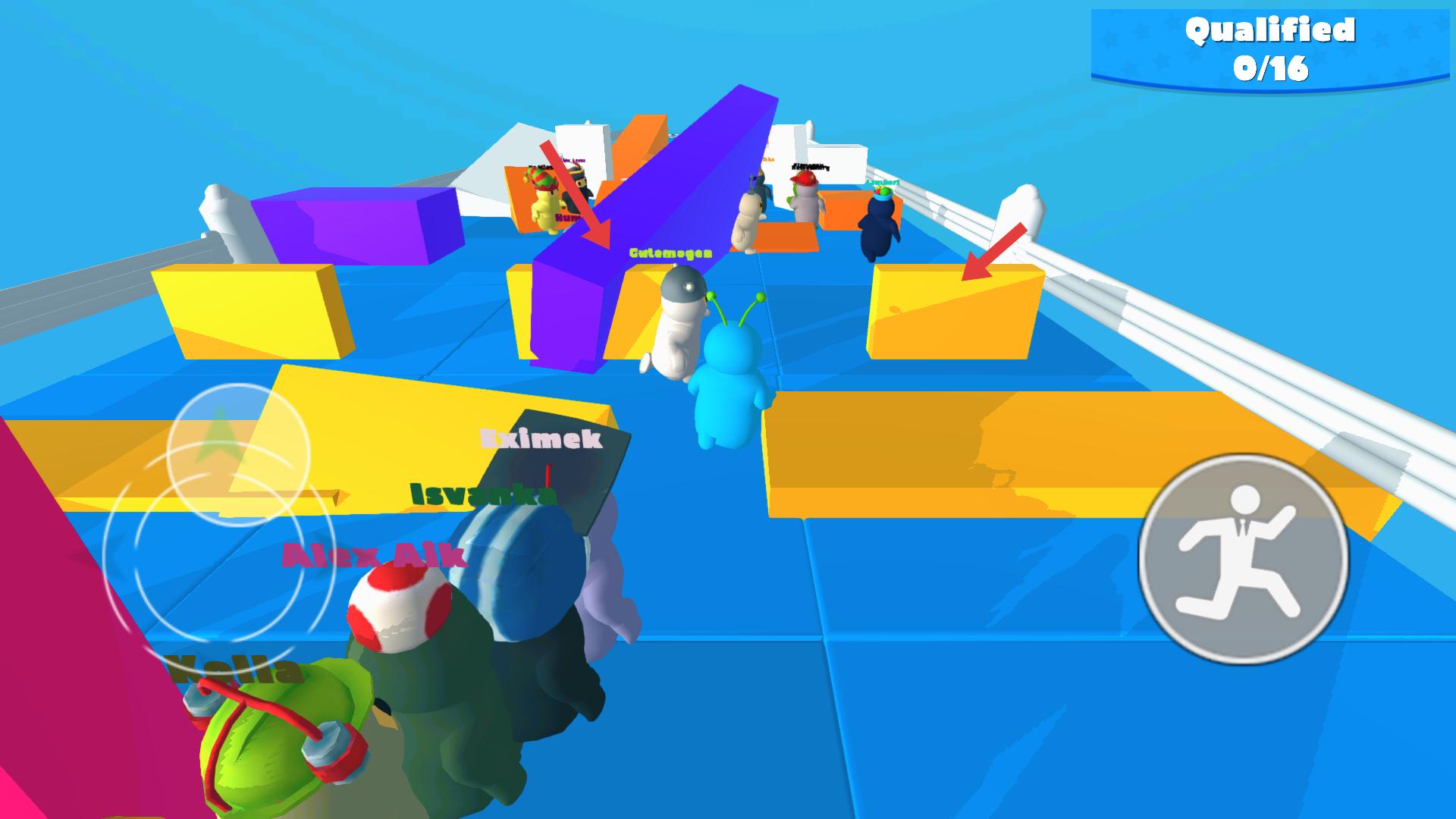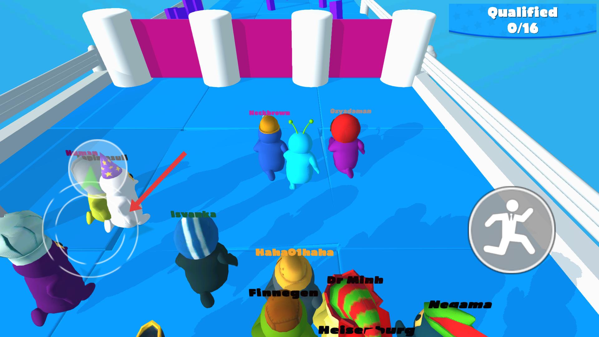 2、進入游戲后操控角色在藍色場地中移動,與其他角色一起等待關卡開始,注意觀察周圍環境和其他角色動向。