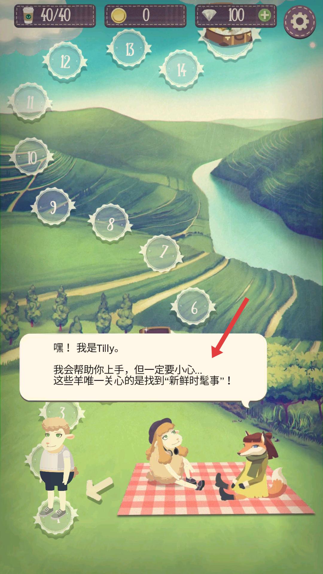 1、游戲開局Tilly會引導新手,要認真看她的提示,了解羊只關注新鮮時髦事的特點,為后續引導羊的行動做準備。