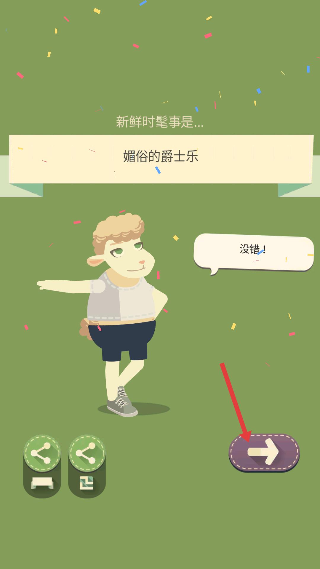 4、當羊找到新鮮時髦事后,界面會顯示相關結果,此時點擊箭頭按鈕,繼續推進游戲,開啟下一段引導羊的任務。